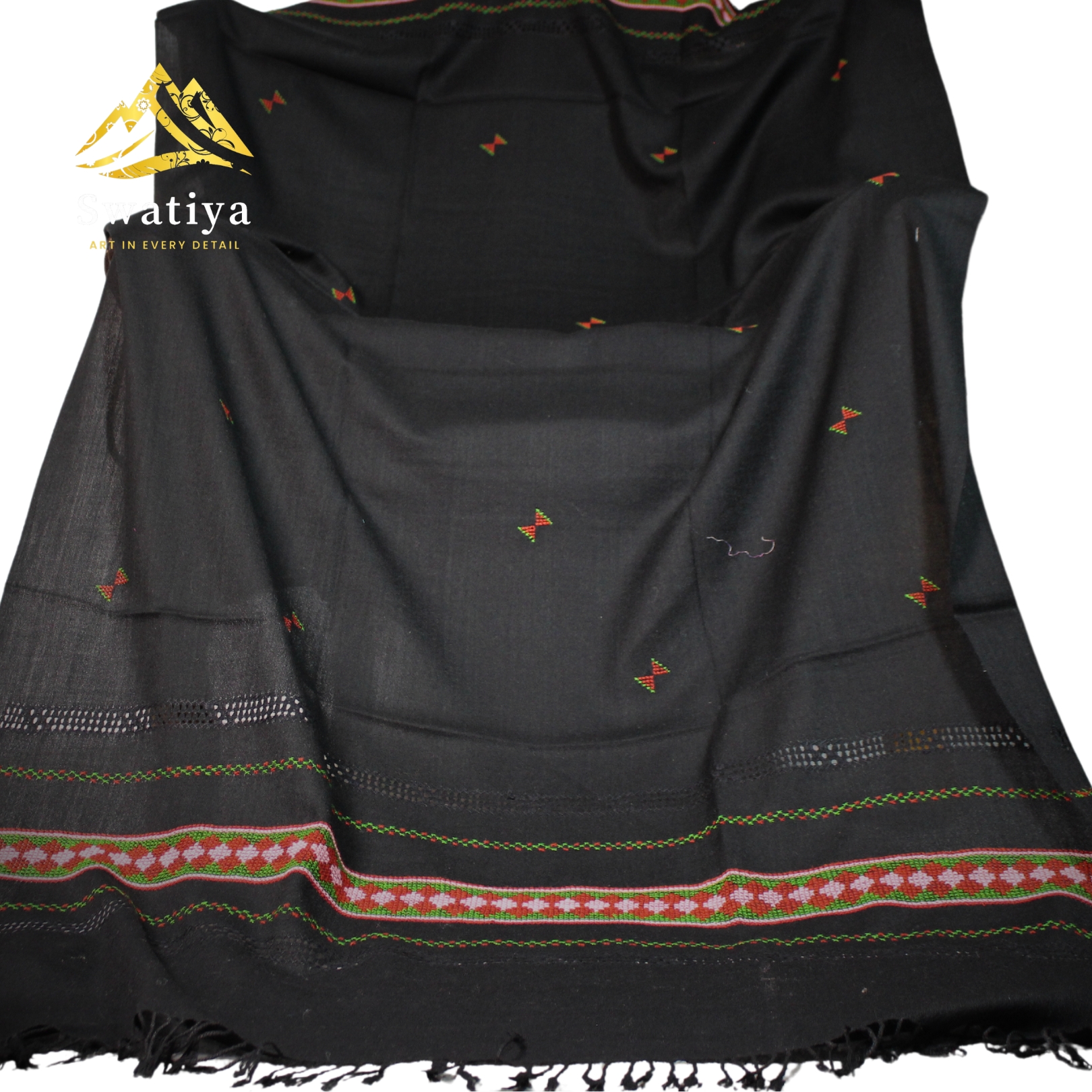 The Swatiya’s Gul-e-Rangrez Black Woolen Shawl for Women is more than a fashion accessory—it’s a celebration of Swat Valley’s weaving tradition, artistry, and sustainable luxury. This shawl, with its timeless design and classy craftsmanship – is perfect for women who value quality, style, and cultural heritage.