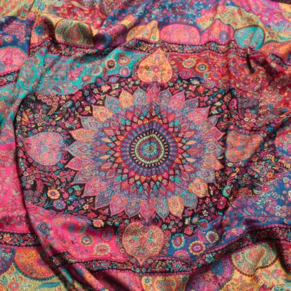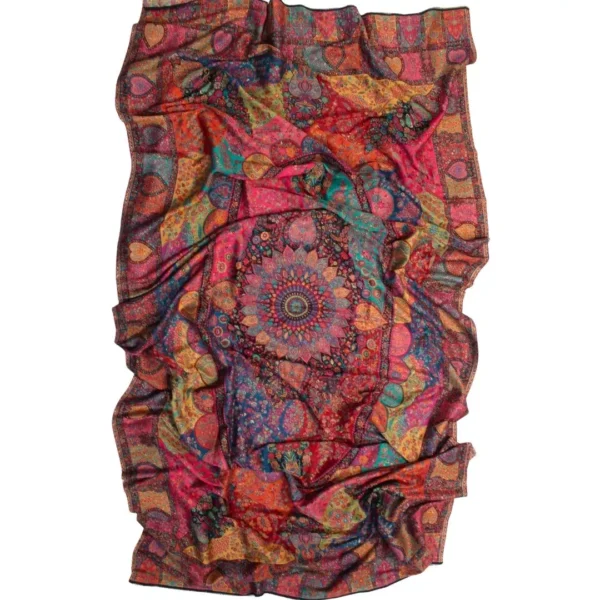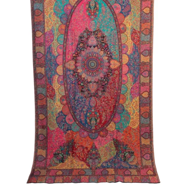 Bahaar-e-Noor – Pashmina Shawl reflects a celebration of color and craftsmanship. Its multi-color Moonlight embroidery dances across the soft and luxurious Pashmina fabric, creating a masterpiece of heritage and grace.