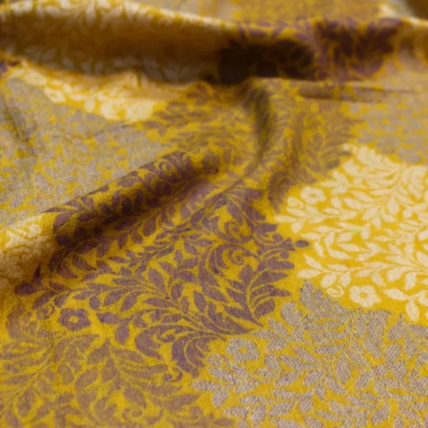 A warm mustard canvas adorned with timeless floral Kani artistry.