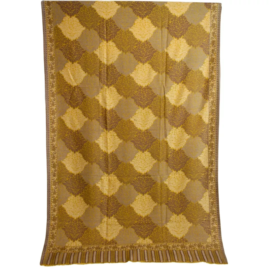 A warm mustard canvas adorned with timeless floral Kani artistry.