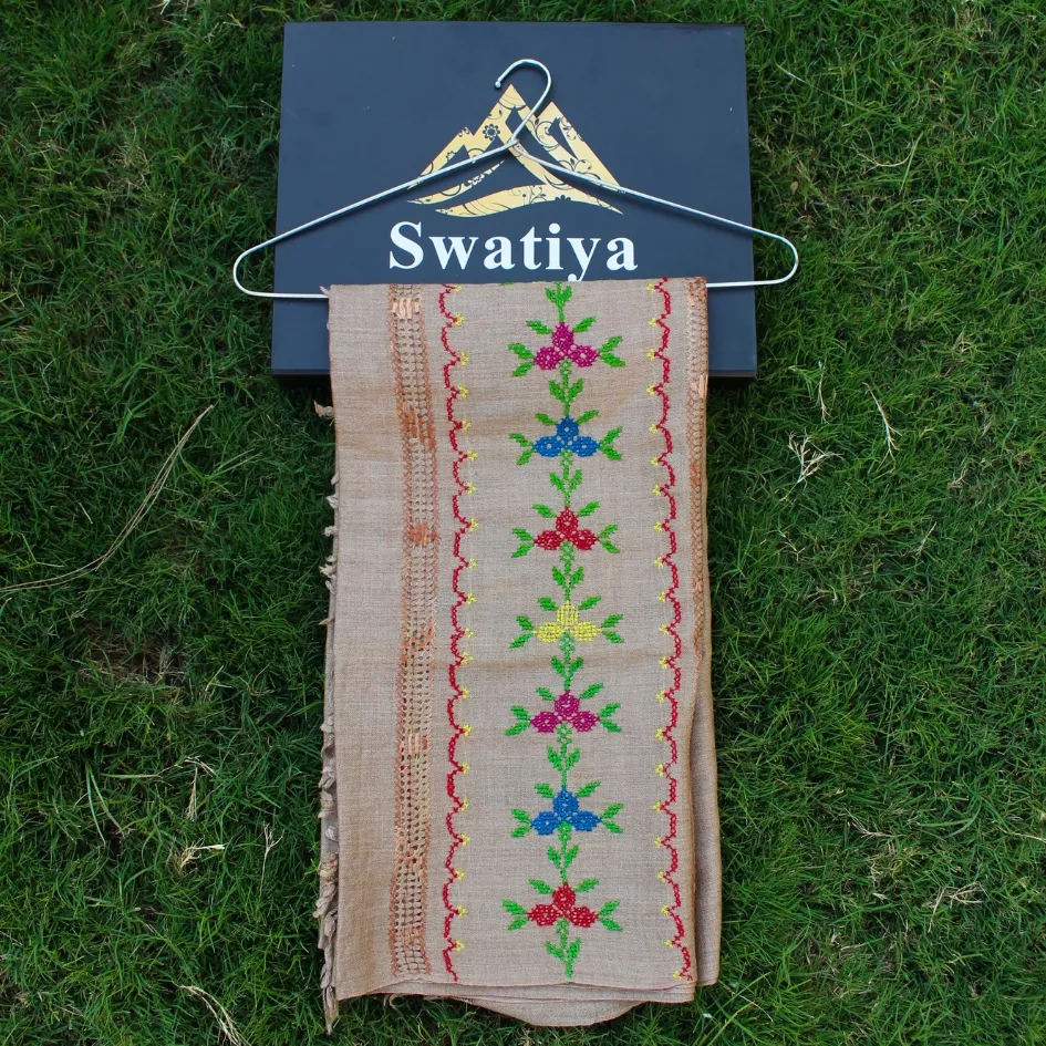 Experience the warmth and artistry of Swati craftsmanship with the Gul-e-Samar woolen shawl. This premium shawl is meticulously handwoven using locally sourced wool, ensuring unmatched softness and durability. Delicate hand embroidery adds a touch of cultural elegance, making it perfect for both casual and formal wear. Whether draped over your shoulders on a chilly evening or styled as an accent piece, this shawl embodies grace, tradition, and luxury.