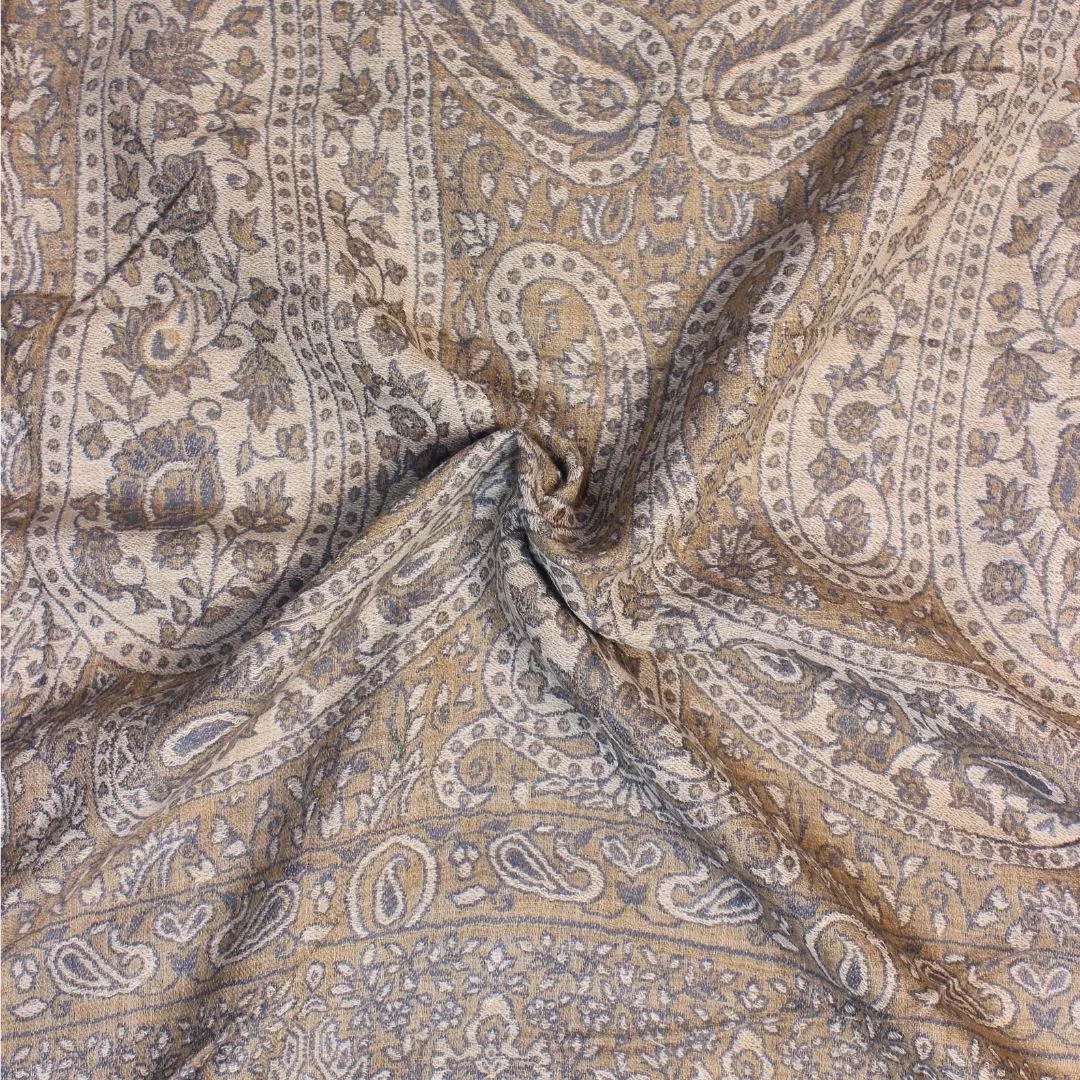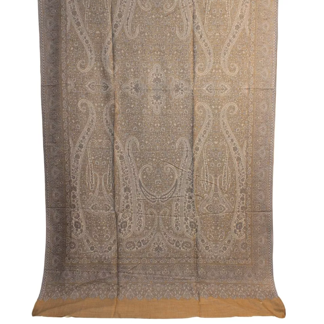 In the soothing warmth of beige, this Pashmina Shawl celebrates the centuries-old art of Kaani embroidery, a technique deeply rooted in the valleys of Kashmir. Each motif is woven with intricate precision, creating soft floral and vine patterns that flow gracefully across the surface.