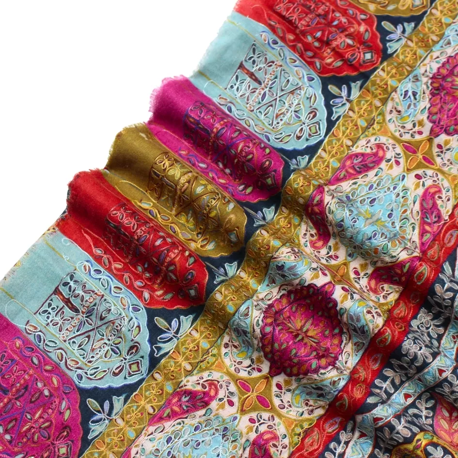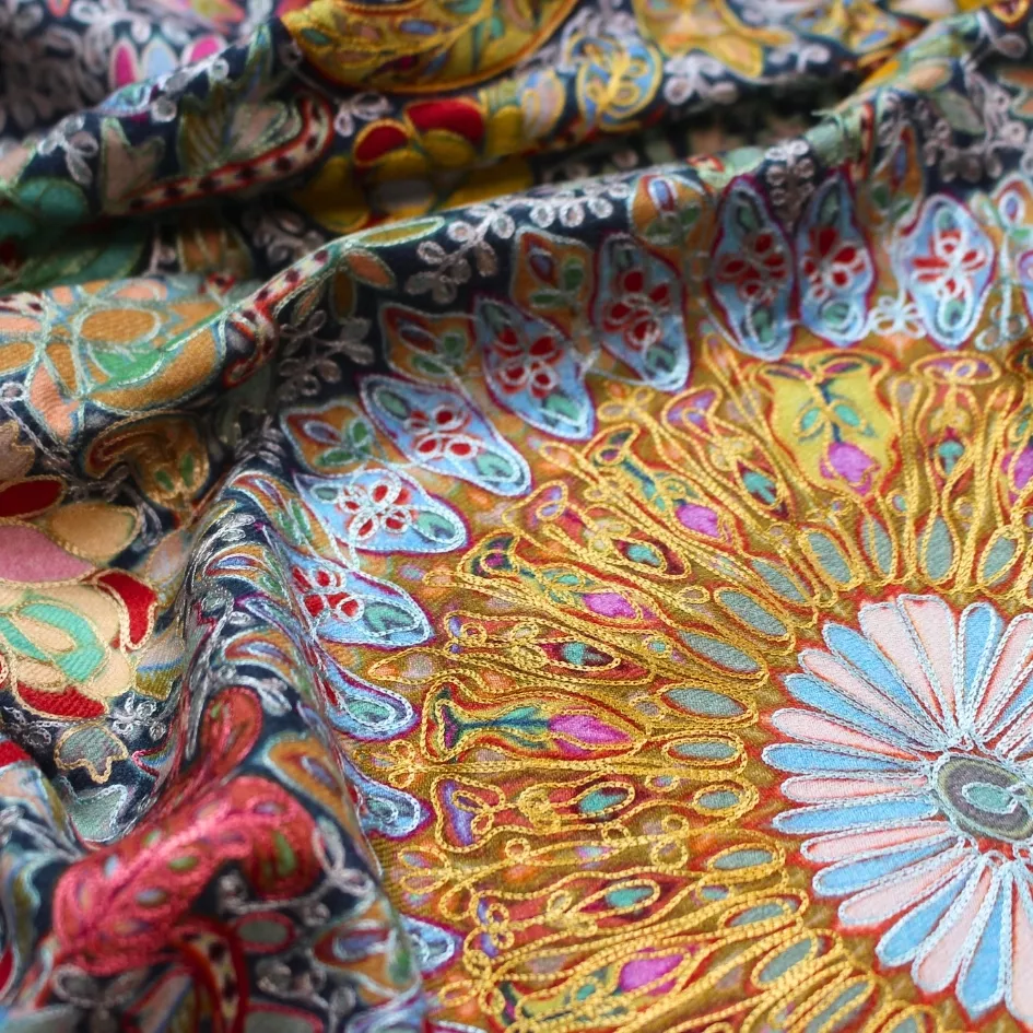 A graceful harmony of hand-painted artistry and subtle embroidered detail.