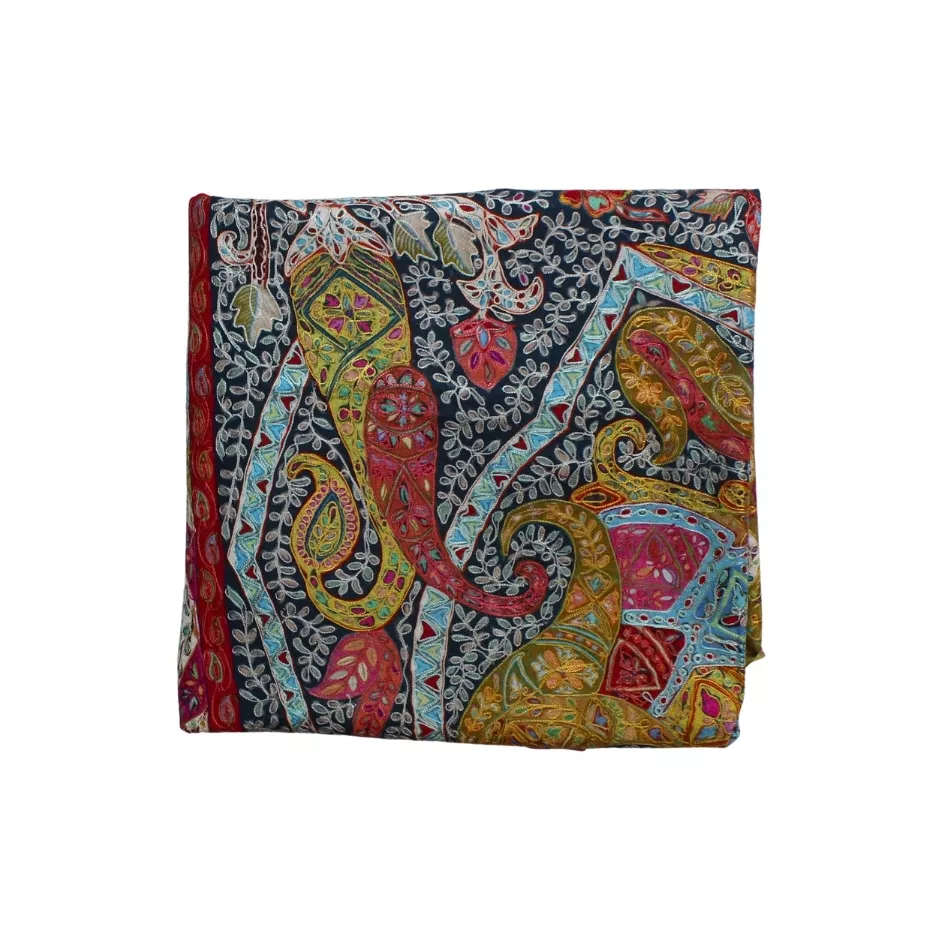 This Qalam Kaar shawl is crafted on a hand-painted fabric, following the traditional technique where each pattern is carefully painted by hand, allowing organic flow and visual balance. The artwork is gently enhanced with fine hand embroidery, adding depth, texture, and artisanal finesse. Created by skilled women artisans, each piece carries its own distinct character and artistic nuance. Lightweight, breathable, and fluid in drape, this shawl offers timeless elegance and refined comfort. Measuring 2.5 yards in length and 1.5 yards in width, it stands as a sophisticated expression of heritage craftsmanship and wearable artistry.