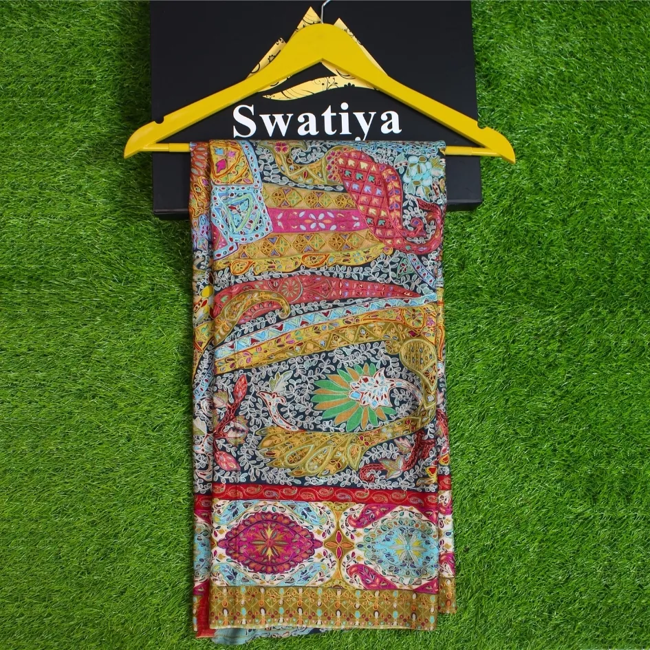 • Traditional Qalam Kaar artistry on hand-painted fabric