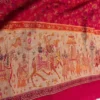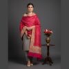 Wrapped in a gentle blush pink base, this Pashmina Shawl shines with two timeless arts — Kaani weaving and Moonlight embroidery. Together, they create a symphony of texture and light, where intricate woven motifs meet delicate embroidered highlights that shimmer softly against the fabric.