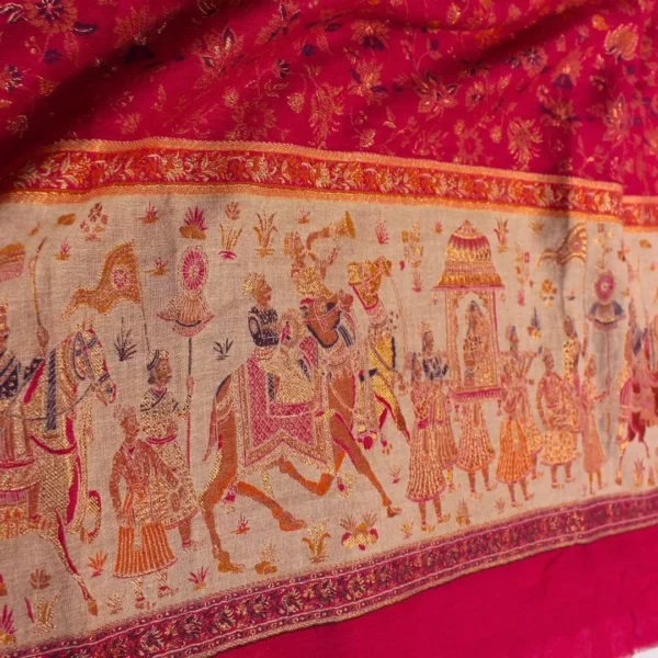 - Embroidery: Combination of Kaani weaving and Moonlight embroidery