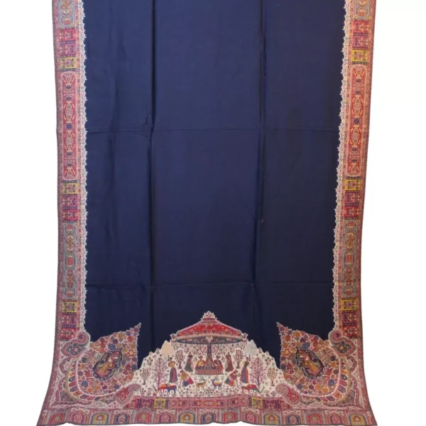 Neel-e-Khaas – Pashmina Shawl embodies sophistication and artistry in every thread. The deep blue Pashmina base complements the intricate Kaani handwork, creating a mesmerizing play of color and texture that reflects centuries of Kashmiri craftsmanship.