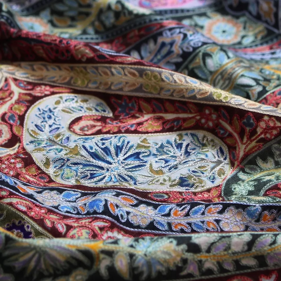 Graceful in drape, this shawl embodies quiet luxury and artistic depth.