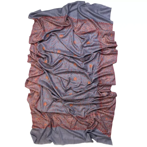 Gracefully crafted in the soothing shade of grey, this Pashmina Shawl embodies the calm of winter evenings and the luxury of Kashmiri artistry. Wrapped in fine handwoven pashmina, it features delicate sui embroidery, each stitch meticulously done by skilled women artisans.