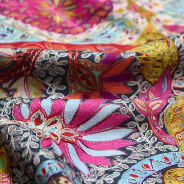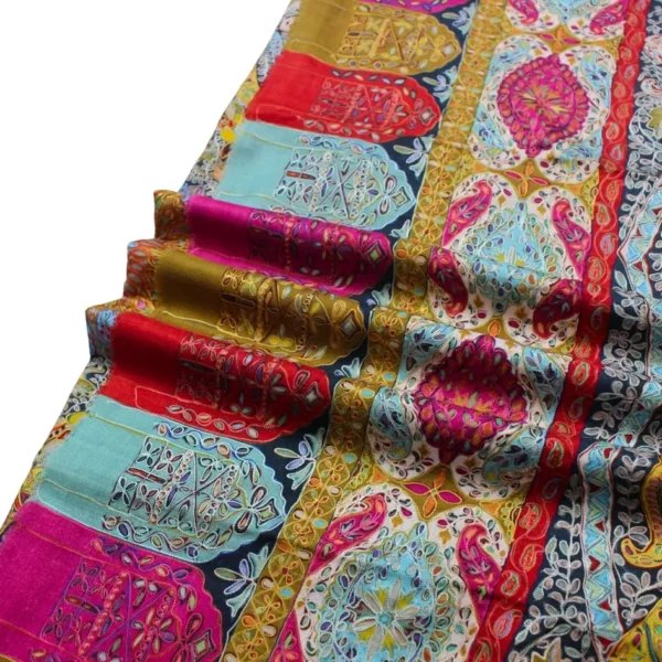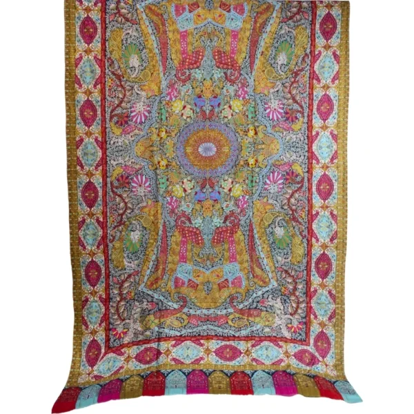 This Qalam Kaar shawl is created on a hand-painted fabric, following the traditional artistry where each brushstroke is applied by hand, allowing the colors to flow organically across the surface. The artwork is further enhanced with delicate hand embroidery, adding dimension, texture, and refined elegance to the design. Crafted by skilled women artisans, every shawl carries subtle variations that make it truly one of a kind. Lightweight, breathable, and graceful in movement, this piece reflects the harmony of painting and embroidery. Measuring 2.5 yards in length and 1.5 yards in width, it stands as a refined expression of heritage and wearable art.