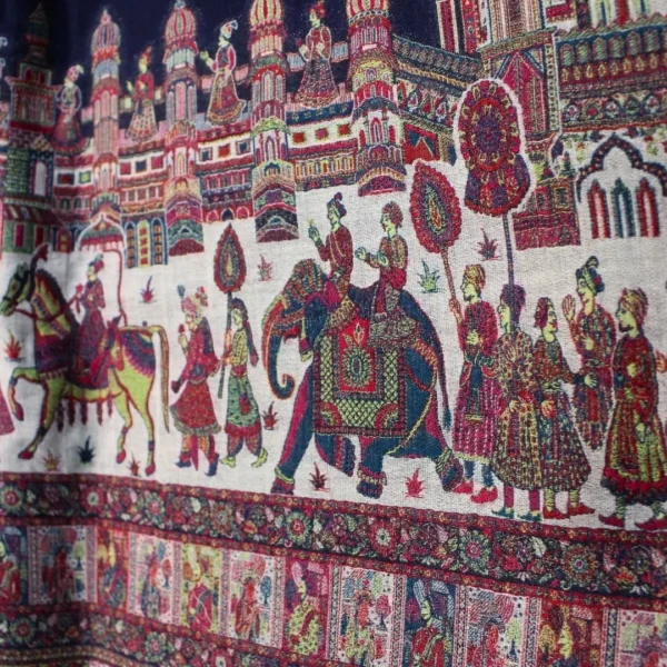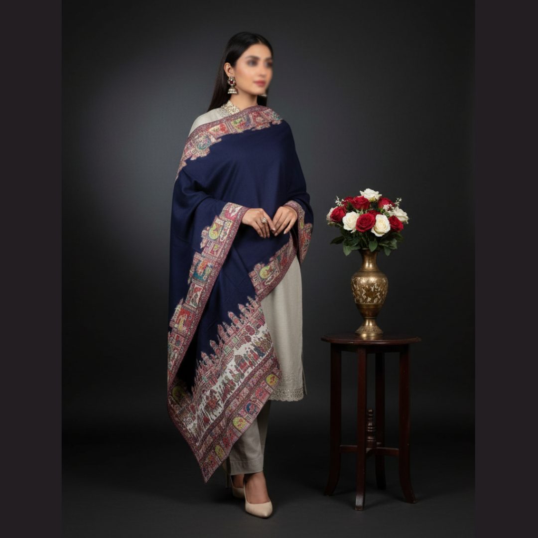 Shab-e-Rang – Pashmina Shawl captures the quiet elegance of Kashmiri nights through its deep blue tone and Kaani craftsmanship. Each thread carries the legacy of artisans who have preserved this intricate weaving tradition for centuries.