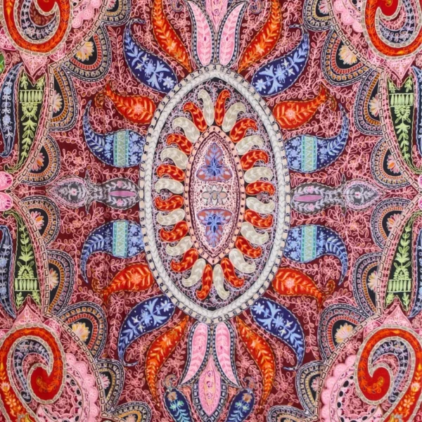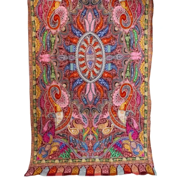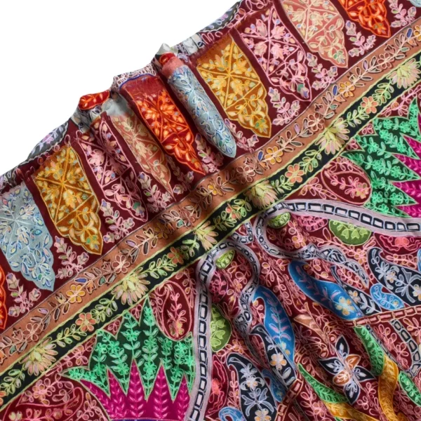This Qalam Kaar shawl is crafted on a hand-painted fabric, following the traditional process where each design is painted by hand, allowing the colors to blend organically and naturally. The artwork is further enriched with delicate hand embroidery, adding texture, depth, and artisanal character to the composition. Created by skilled women artisans, every piece carries slight variations that reflect its handcrafted nature. Lightweight, breathable, and fluid in drape, this shawl represents the perfect balance between painting and embroidery. Measuring 2.5 yards in length and 1.5 yards in width, it stands as a refined example of wearable heritage art.