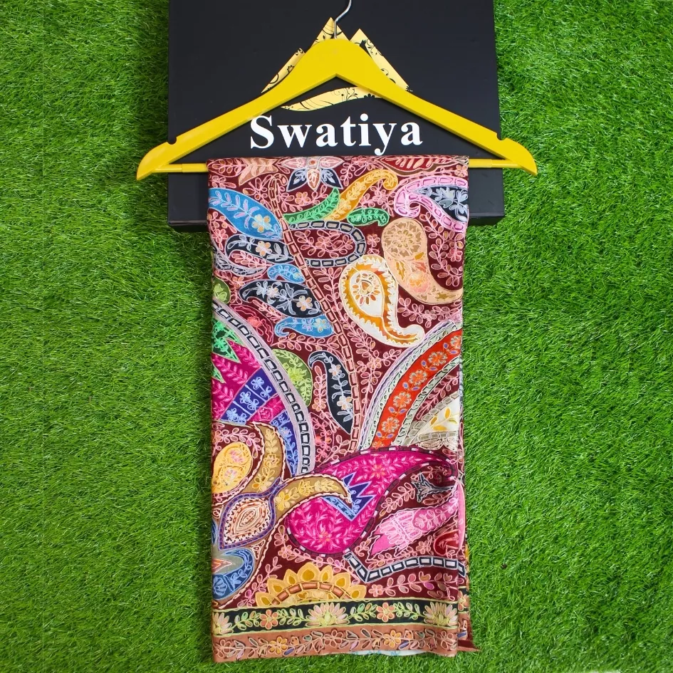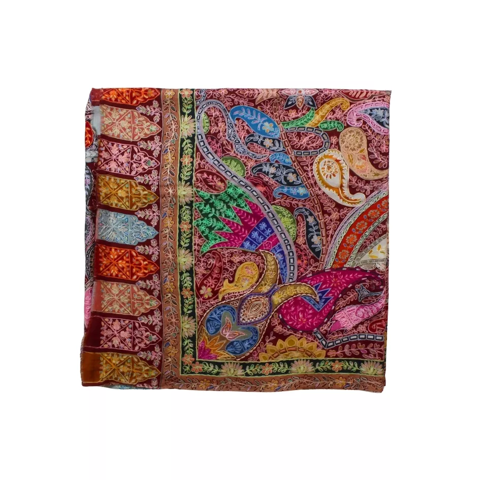 This Qalam Kaar shawl is crafted on a hand-painted fabric, following the traditional process where each design is painted by hand, allowing the colors to blend organically and naturally. The artwork is further enriched with delicate hand embroidery, adding texture, depth, and artisanal character to the composition. Created by skilled women artisans, every piece carries slight variations that reflect its handcrafted nature. Lightweight, breathable, and fluid in drape, this shawl represents the perfect balance between painting and embroidery. Measuring 2.5 yards in length and 1.5 yards in width, it stands as a refined example of wearable heritage art.