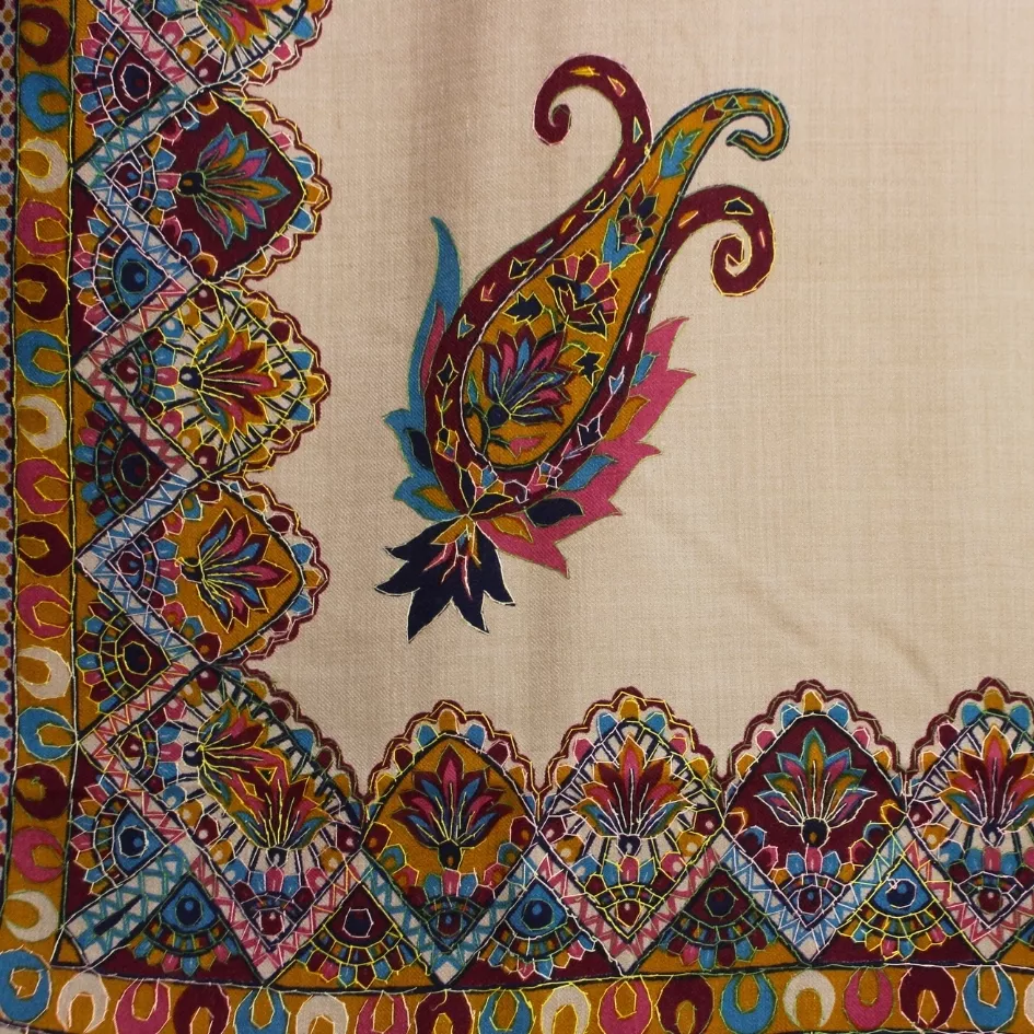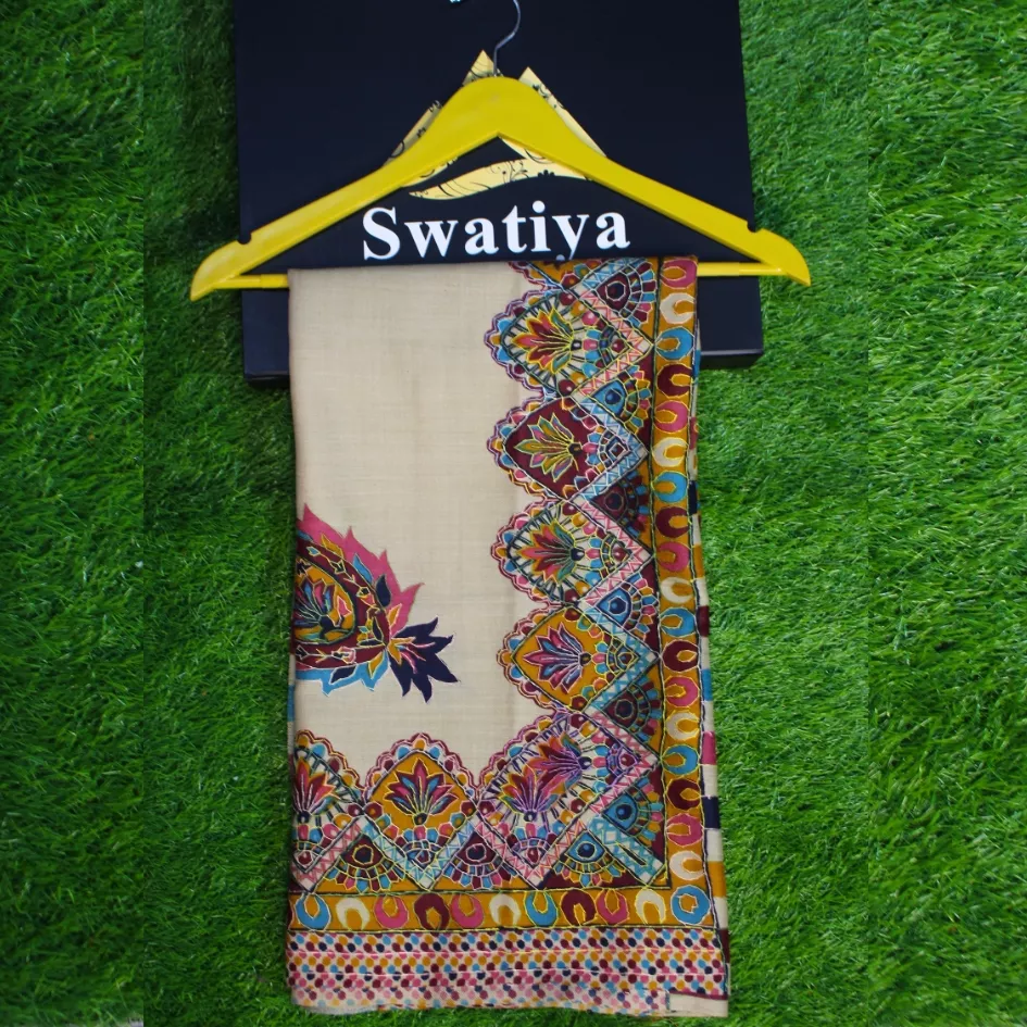 - Beige base with hand-done multi-color Qalam-Kaar work